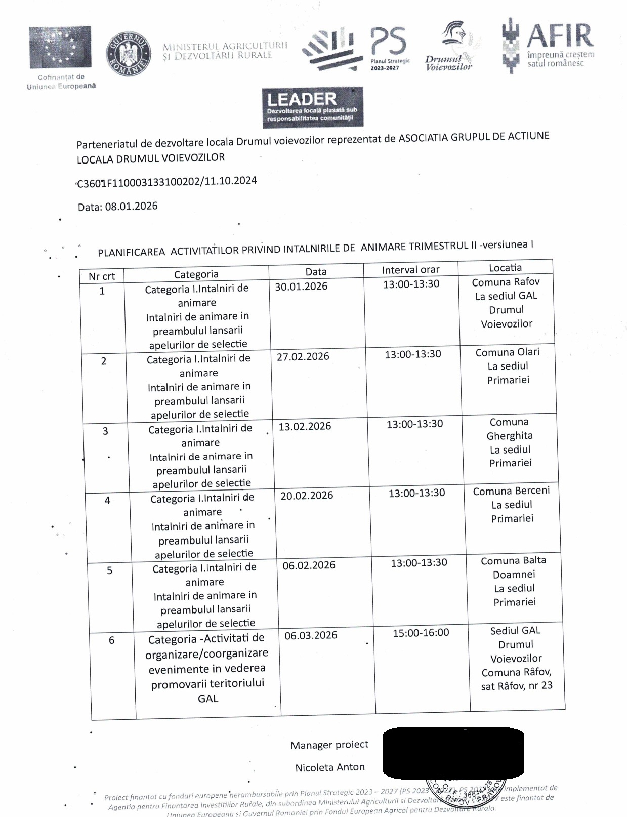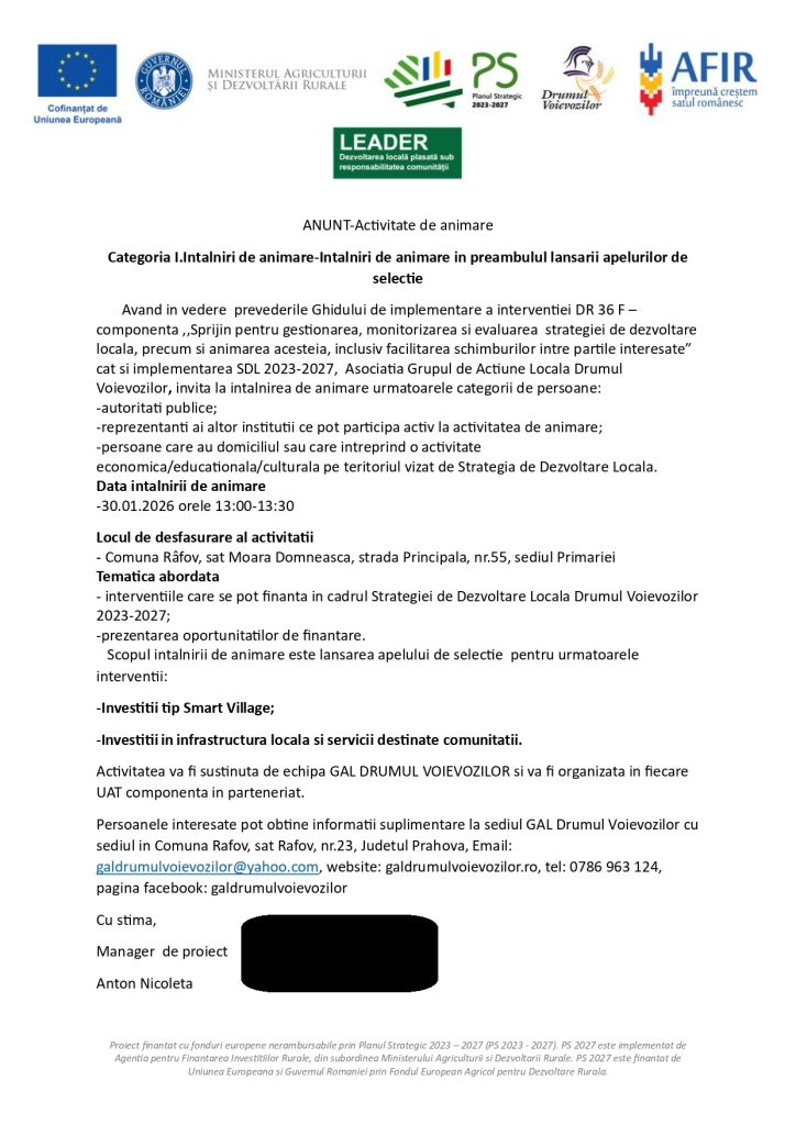 Anunt Intalniri de Animare – Comuna Rafov